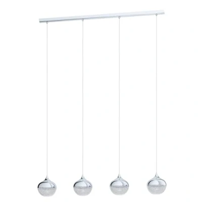 AmazonThe pendant light with spherical lamp elements made of chrome-plated steel and transparent plastic with white granille crystals blends seamlessly into the modern elegant trend No light bulb included in the delivery; The energy-saving LED bulbs are available separately under EGLO 12261 Dimensions: Height: max 110 cm, Length: 97.5 cm