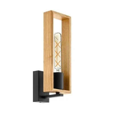The modern material mix of solid, light-coloured real wood and black steel gives this wall mounted light fixture a vintage appearance This industrial designed wall mounted light is ideal for indoor use such as living room, bedroom, dining room, kitchen or hallway These wall lamps are ideal as decoration for living rooms in the styles vintage, retro, country house, nature or industrial designs The filament bulb shown is not included in the scope of delivery and is available separately under EGLO 110057; Suitable for any bulb with E27 base (maximum wattage per socket 60 W) Dimensions: Height: 33 cm (12.9"), length: 11 cm (4.3"), projection: 11.5 cm (4.5")