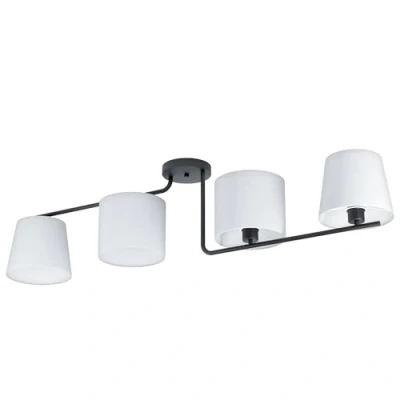 The ceiling light made of black steel with decorative lampshades made of textile in white blends seamlessly into the trend of modern elegance With its special design, the ceiling light offers a highlight in any room - whether in the kitchen, living room, dining room, hallway or bedroom The LED bulbs are not included and are available separately under "EGLO 11595" Suitable for any bulb with E27 socket, maximum 28 watts per socket. Dimmable depending on the bulb used Dimensions: height: 28 cm, length: 124.5 cm