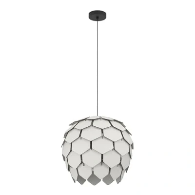 Amazon MarketplaceThe pendant ceiling light fixture features a round lampshade composed of a multitude of light grey wooden slats which is suspended from a round canopy made of black metal The light bulb is not included in the scope of delivery Dimensions: height: 246.5 cm/ 97.04 in, diameter: 49.5 cm/ 19.5 in