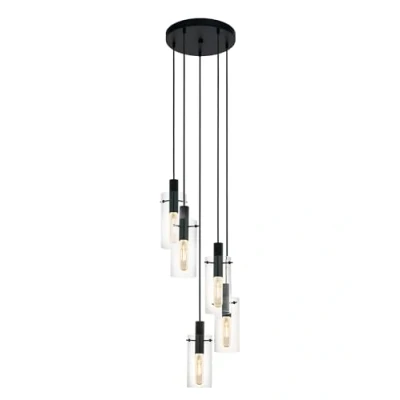 EGLO Montefino Pendant Light, 5 Bulb Metal Light in Black and Clear Glass, Dining Table Lamp, Living Room Hanging with E27 Socket
