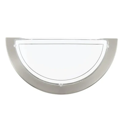 The wall light made of matte nickel metal with a cover of white painted and clear glass fits seamlessly into the modern trend No light bulb included in the delivery Dimensions: length 29 cm, height 14.5 cm, projection 8.5 cm