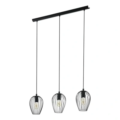 EGLO Newtown Vintage 3 Flame Pendant Lamp, Retro Black Steel Hanging Light, E27 Socket