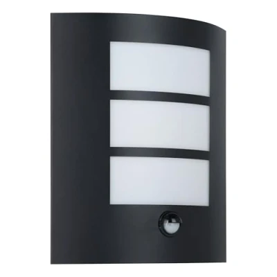 EGLO Outdoor Wall Light City with Motion and Twilight Sensor, Porch Lighting, Waterproof Outside Lamp Made of Black Galvanized Steel White Plastic, E27 Socket, IP44