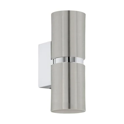 EGLO Passa LED Wall Light 2 Bulbs Modern Interior Metal in Nickel Matt and Chrome Living Room Lamp Hallway with Up Down Light, Round, GU10 Socket