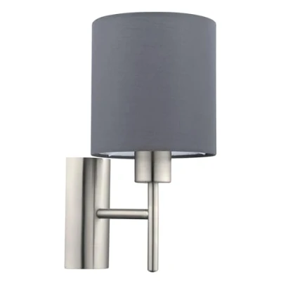 Eglo Pasteri Textile Wall Light, Matt Nickel Steel and Grey Fabric Lamp, E27 Socket, Incl. Switch