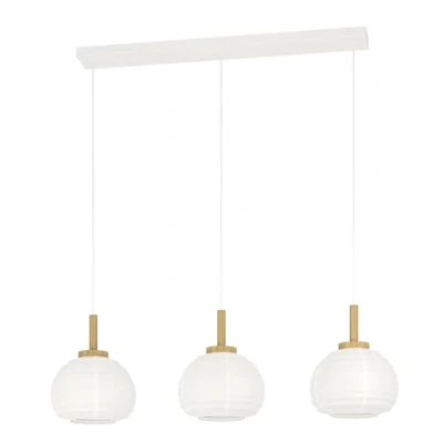 Eglo Pendant Lamp Summerhill, 3 Light Hanging for Dining Table, Japanese Style Room Light, Metal, Wood and Paper in White, FSC Certified, E27 Socket, 92.5 cm