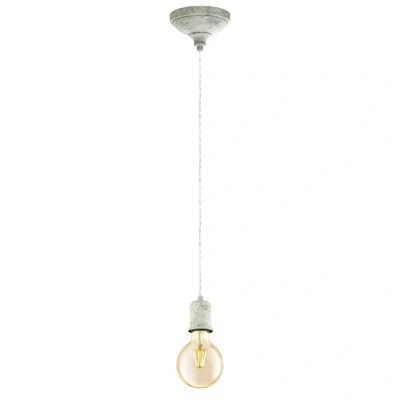 The decorative pendant light made of steel in limed white and a textile cable in grey blends seamlessly into trends such as vintage and industrial With its special design, the pendant lamp offers a highlight in any room - whether in the kitchen, in the living room or in the dining room above the dining table The filament LED light bulb is not included and available separately under "EGLO 11522" Suitable for any bulb with E27 socket, maximum 60 watts per socket. Dimmable depending on the bulb used Dimensions: height: max. 200 cm, diameter: 12.5 cm
