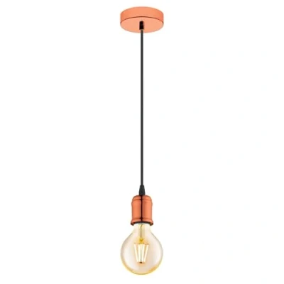 The decorative pendant light made of steel in copper and a textile cable in black blends seamlessly into trends such as vintage and industrial With its special design, the pendant lamp offers a highlight in any room - whether in the kitchen, in the living room or in the dining room above the dining table No bulb included; the filament LED bulb is sold separately under EGLO 110053 Suitable for any bulb with E27 socket, maximum 60 watts per socket; dimmable depending on the bulb used Dimensions: height: max. 200 cm, diameter: 10 cm