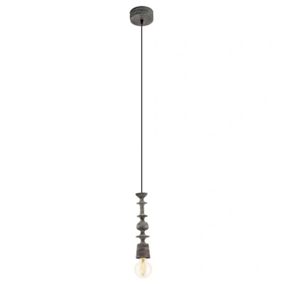 The natural pendant ceiling light fixture with its round wooden ceiling canopy, the fancy wooden detailing made of wood with black patina as well as the visible bulb socket blends in seamlessly with trends like nature, country house style and boho The light bulb is not included in the scope of delivery; The depicted LED light bulb is available separately (product EGLO 11556) Dimensions: height: 110 cm/ 43.3 in, diameter: 7 cm/ 2.8 in