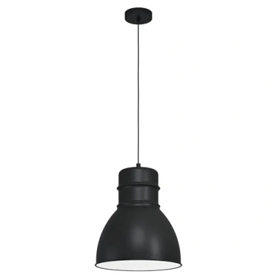 The pendant light fixture made of black metal with its inner white surface and its black textile cable fits seamlessly into trends like industrial and Scandinavian The light bulb is not included in the scope of delivery Dimensions: height: 110 cm/ 43.3 inches, diameter: 38 cm/ 15 inches