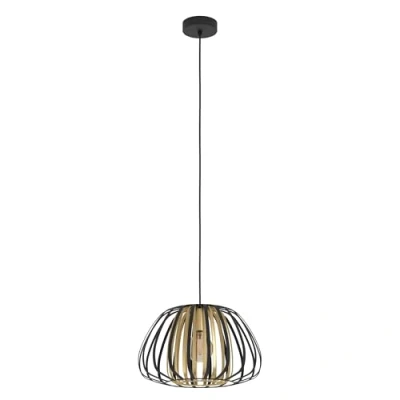 Amazon MarketplaceThe pendant light fixture with its lampshade made of black flat metal and brushed brass as well as its cable made of black fabric fits seamlessly into the modern trend The luminaire with its appealing design particularly catches the eye and is a highlight in any room – whether it be in the living room or in the dining room above the dining table Dimensions: height: 110 cm/ 43.3 inches, diameter: 37.5 cm/ 14.8 inches