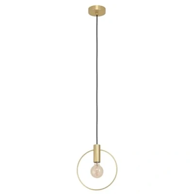 The pendant light fixture made of brushed brass metal with its ring, its lamp holder on the inside and its black fabric cable elegantly blends in with minimalistic interiors The depicted filament LED light bulb is not included in the scope of delivery and is available separately (product EGLO 110075) Dimensions: height: 110 cm/ 43.3 inches, diameter: 25 cm/ 9.8 inches, width: 10.5 cm/ 4.1 inches
