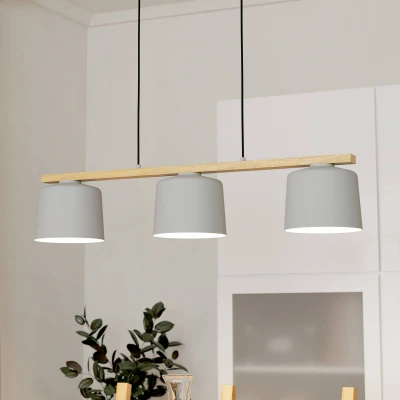 Eglo Pendant Lighting Mariel, Ceiling Light Fitting with 3 Shades, Hanging lamp for Dining and Living Room Made of Grey Metal Natural Wood, FSC100HB, E27 Socket