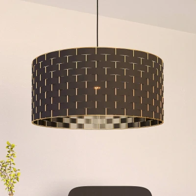 EGLO Pendant Lighting Masarales, Elegant Ceiling Light Fixture for Dining and Living Rooms, Hanging Made of Black Fabric Brass Coloured Metal, E27 Socket, Ø 55 cm