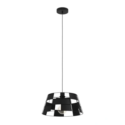 Amazon MarketplaceThis pendant light fixture features a round lampshade made of black steel which is suspended from a black metal canopy by a black textile cable; The square elements of the shade create a distinctive checkered pattern Whether suspended above a dining table or a kitchen island, this monochrome ceiling lamp seamlessly complements modern interior decor, providing atmospheric lighting for your living room, bedroom, kitchen or dining area Dimensions: height: 110 cm/ 43.31 in, diameter: 42 cm/ 16.54 in
