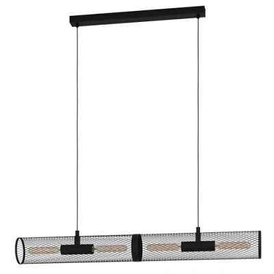 The pendant light fitting with its lampshade out of black metal mesh ideally embodies industrial design and complements interiors When the hanging lamp is switched on, the mesh-work creates a fascinating interplay of light and shadow The luminaire with its stylish design provides pleasant light in any room, whether it be in the living room or in the dining room above the dining table The depicted filament light bulb is not included in the scope of delivery and is available separately (product EGLO 11679). Suitable for any type of light bulb with E27 holder, maximum wattage 40 W per socket. Dimmable depending on the light bulb used Dimensions : height : 110 cm/ 43.3 inches, length : 108 cm/ 42.5 inches, width : 12 cm/ 4.7 inches