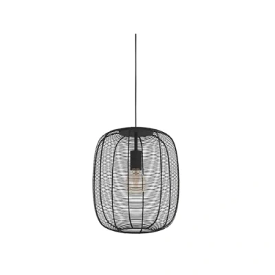 The hanging dining table lamp has a rounded metal lampshade made of black, wound wire and fits seamlessly into the vintage and industrial trend. As soon as the metal hanging lamp is switched on, the grid of the shade creates a fascinating play of light and shadow Dimensions: Height: 150, diameter: 32.5 cm