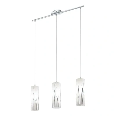The Rivato pendant bar showcases elegantly designed white glass cylinder shades adorned with intricate chrome grass-like patterns. This unique decorative touch elevates the overall aesthetic, creating a visually appealing focal point in any room. The shiny chrome finish not only enhances the allure of the fixture but also complements a wide range of interior design styles, including modern, minimalistic, and industrial themes.