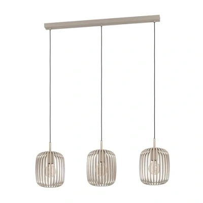 Eglo Pendant Lighting Romazzina, 3 lamp Ceiling Light Fitting, Hanging for Dining and Living Room Made of Metal in Sand Colour, E27 Socket