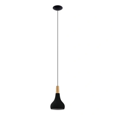 Eglo Pendant Lighting Sabinar, Ceiling Light Fitting, FSC100HB, Hanging lamp for Dining and Living Room Made of Black Metal Natural Wood, E27 Socket, Ø 7 in