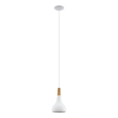Eglo Pendant Lighting Sabinar, hamging lamp Made of White Metal and Natural Wood, Ceiling Light Fixture with E27 Socket, Ø 18 cm, FSC Certified
