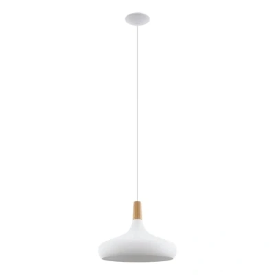 Eglo Pendant Lighting Sabinar, hamging lamp Made of White Metal and Natural Wood, Ceiling Light Fixture with E27 Socket, Ø 40 cm, FSC Certified