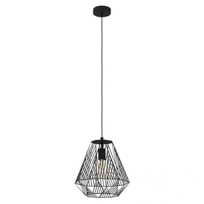 The pendant light fixture made of black metal is equipped with a diamond-shaped wire lampshade and a textile cable and fits seamlessly into the modern trend The suspended luminaire with its appealing design particularly catches the eye and is a highlight in any room – whether it be in the living room or in the dining room above the dining table Dimensions: height: 110 cm/ 43.3 inches, diameter: 33 cm/ 13 inches