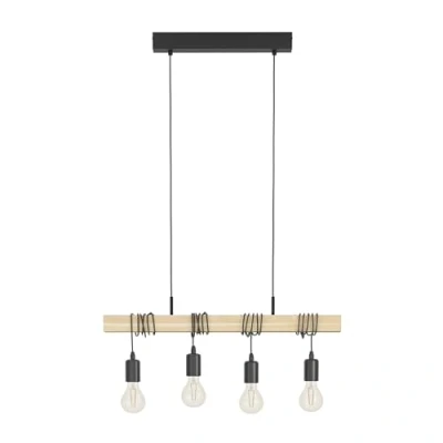 Eglo Pendant Lighting Townshend, 4 Light Vintage Hanging lamp in Industrial Design, Retro Ceiling Made of Black Metal and Natural Wood, FSC Certified, E27