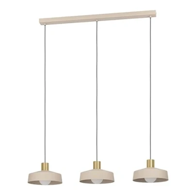EGLO Pendant lighting Valdiola, 3 lamp ceiling light fitting, hanging for dining and living room made of metal in sand colour brushed brass finish, E27 socket