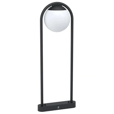 The decorative outdoor floor lamp is made of galvanised steel in black and a spherical lamp head with a white plastic cover The weather-resistant outdoor light is splash-proof (IP44); so it is safe to use outdoors such as garden, driveway, paths or entrance area The modern design of the floor lamp blends stylishly into the outdoor area and creates a welcoming atmosphere No bulb included; the bulbs shown are sold separately under EGLO 110032; suitable for any bulb with E27 socket, maximum 28 watts per socket Dimensions: height: 85 cm, length: 32 cm, width: 20 cm