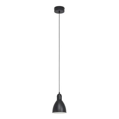 Small Priddy 1 pendant light in the vintage style with a black shade The metal parts of the Priddy 1 pendant light feature a matt black design. The vintage-style pendant light can be used to illuminate tables or bars in many homes, as well as in restaurants; and is sure to complete all furnishings in this vintage-looking style. Traditional light bulbs can be used as well as energy-saving LED lamps and energy-saving bulbs.