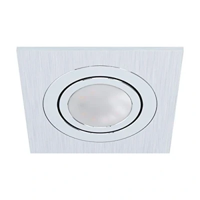 The square recessed spotlight made of brushed aluminium can be swivelled and blends seamlessly into the modern trend Thanks to the flat design and the timeless design, the spot can be used in any room – whether in the kitchen, living room, dining room, hallway or bedroom The energy-saving LED light bulb is included and provides pleasantly warm white light (5 watts, 400 lumens) Suitable for any bulb with GU10 socket, maximum 5 watts per socket. Dimmable depending on the bulb used Dimensions: installation depth: 11.5 cm, length x width: 9.5 cm, cut-out: 7.5 cm