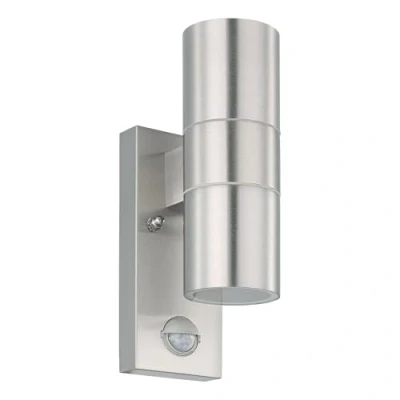 Eglo Riga 5 LED Sensor Outdoor Wall Lamp, 2 Flame Exterior Light in Silver Stainless Steel and Glass, Incl. Motion Detector, IP44