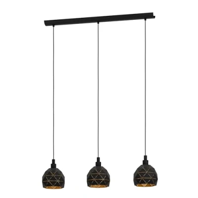 EGLO Roccaforte hanging light, black/gold coloured, length 75 cm