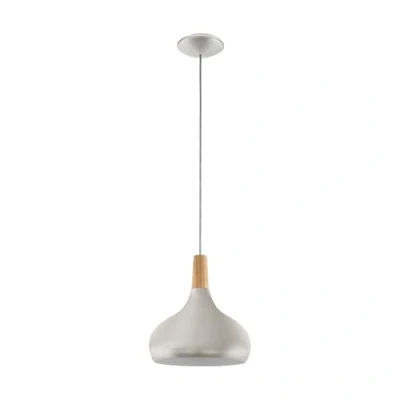 EGLO Sabinar Pendant lamp, 1 Light e Hanging lamp Made of Steel and Wood, Colour: Brushed Silver, Brown, Socket: E27, Ø: 28 cm