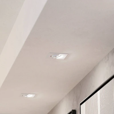 Square LED recessed spotlight Saliceto with swivelling head Recessed spotlights are a very good choice for ambient lighting in a wide variety of rooms. They fit into almost any furnishing style and are hardly noticeable. The inclination of the Saliceto LED recessed spotlight can be adjusted in the square bracket so that the light beam can be positioned variably. The dimmable LED spotlight is also suitable for replacing existing halogen spotlights. It can be adjusted in brightness using a suitable dimmer and connected directly to 230V thanks to the integrated LED driver.