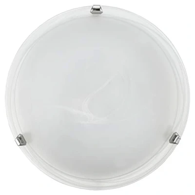The ceiling light fitting with chrome-coloured metal details and a round cover made of white alabaster glass blends seamlessly into classic interior styles The ceiling spot offers timeless illumination in any room with its simple design – whether in the kitchen, living room, dining room, hallway or bedroom No light bulb included in the delivery contents Suitable for any light bulb with an E27 base, maximum 25 watts per socket Dimmable depending on the light bulb used Dimensions: Diameter 30 cm, Height 9 cm