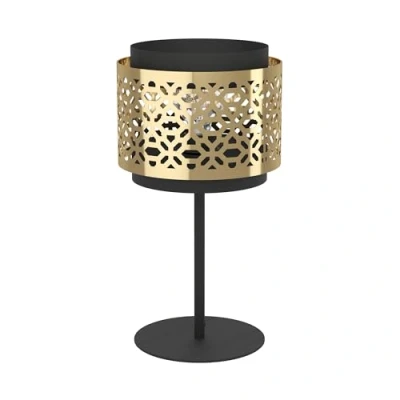 The elegant bedside lamp with its black metal base and round shade in black metal and brass blends harmoniously into various interior styles thanks to its oriental charm The brass shade surrounds the black metal and is adorned with a fine cut pattern that creates a fascinating play of shadow and light when the living room lamp is turned on The decorative light provides warm and elegant lighting, whether in the bedroom on the bedside table, living room, bedroom or hallway The interior light has a switch on the cable that makes it easy to turn on and off Dimensions: Height: 45 cm, Diameter: 24 cm; Bulb not included; Suitable for any bulb equipped with an E27 socket with a maximum power of 40 W