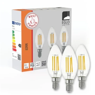 Eglo Set of 3 E14 LED Light Bulbs, Candle Shape Screw Lightbulb, Edison lamp for Retro Lighting, 7 watt Each, Warm White, 2700K, Transparent, P45, Ø 1.38"