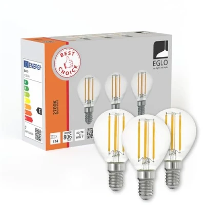 Eglo Set of 3 E14 LED Light Bulbs, Drop Shape Screw Bulb, Edison lamp for Retro Lighting, 7 watt Each, Warm White, 2700K, Transparent, P45, Ø 1.77"