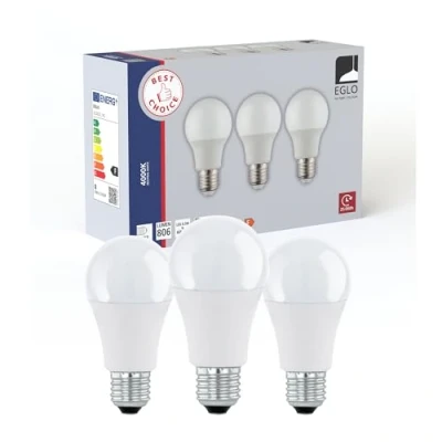 Eglo Set of 3 led Light Bulbs, E27 Screw Standard Lightbulbs, 8 watts Each, Neutral White, 4000 K, 806 Lumen, Incandescent lamp A60, Opal Glass, Ø 6 cm