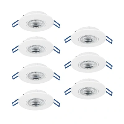 The seven flat LED recessed lights made of white plastic blend unobtrusively into the ceiling and provide subtle ceiling lighting in your living spaces Depending on the chosen colour temperature, the LED spots are ideal as general lighting in the living room, bedroom, dining room, hallway, kitchen or office This product is an containing product with a light source of energy efficiency class F; containing products are luminaires that can be disassembled for separate inspection of the included light source(s)