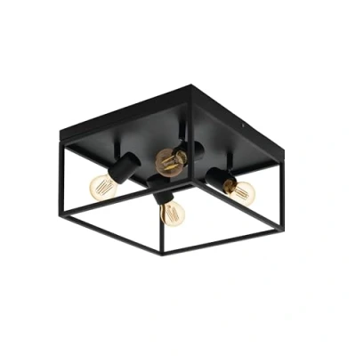 Eglo Silentina 4 Flush Ceiling Light, Flame Industrial Design Living Room, Kitchen or Hallway Lamp, Black Steel Wall Lighting, E27 Socket