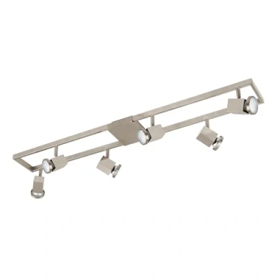 The LED ceiling light made of metal and plastic in matte nickel with six adjustable spotlights can be seamlessly integrated into modern interiors The timeless design of the lamp integrates stylishly into various living spaces such as the kitchen, living room and hallway This product is an encompassing product with a light source of energy efficiency class F; encompassing products are luminaires that can be disassembled for separate inspection of the contained light source(s)