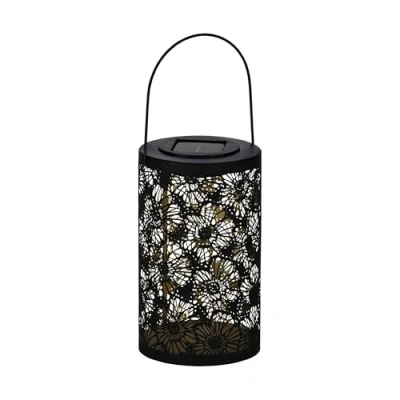 The solar lantern made of black steel and plastic with a burnished and gold-coloured interior creates atmospheric lighting effects thanks to the delicate cut-outs of the cylindrical lampshade The outdoor light is ideal as illuminated garden decoration, balcony decoration or terrace lighting; the solar table lamp provides atmospheric lighting on the balcony, terrace or in the garden with its warm white light (3000 Kelvin, 0.03 watts) This product is solar-powered; according to the EU directive on energy consumption labelling, this light does not require an energy label
