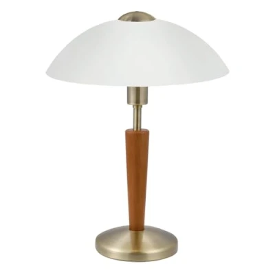 Eglo Solo 1 Table Lamp, Bulb Material: Steel, Wood, Colour: Burnished, Walnut, Glass: Satin White, Socket: E14, Includes Touch Dimmer