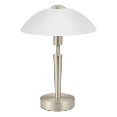 Eglo Solo 1 Table Light, Matt Nickel Steel and White Glass Bedside Lamp, E14 Socket, incl. Touch Dimmer Switch