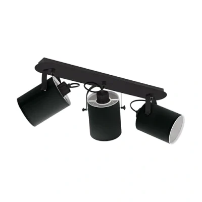 The decorative ceiling light made of black steel with three spots in black textile with white interiors fits seamlessly into trends such as modern and classic No light bulb included in the delivery; The LED bulbs are available separately under EGLO 110032 Dimensions: length 57.5 cm, width 9 cm