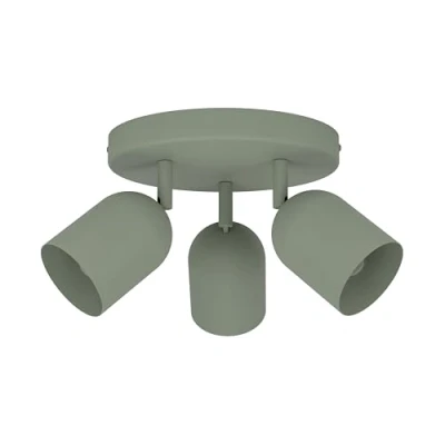 The ceiling spotlight in loden green steel with a round canopy and three rounded spotlights gives your living spaces a natural accent and provides cosy ceiling lighting The ceiling light fixture is versatile in the living room, bedroom, kitchen, office or hallway, as the light colour can be adjusted to create a cosy or functional atmosphere depending on the light bulb used Dimensions: Height: 21 cm, diameter: 25 cm
